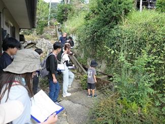 C-2-1 水の経験価値を共体験する場の試行(水めぐりワークショップ) C-2-1水の経験価値を共体験する場の試行(水めぐりワークショップ) 内容・方法・活動 結果 特記事項 ※ 動画が入ります インタビュー記事を見る 内容・方法・活動 結果 特記事項 インタビュー記事を見る 内容・方法・活動 結果 特記事項 内容・方法・活動 山梨大学、山梨県立大学、甲州市がモデレーター、NPO等がコーディネーターとなり、地域住民および移住者、訪問者とも情報を交換しながら互助ネットワーク「共創の場」を形成する。さらに、小さな水サービスの導入とともに、その水サービスを活かした共体験(地域の親水活動、水源保全活動、花木や作物等の栽培・植栽、環境の理解や教育のためのセミナー)を演出する。その結果、社会的効用がどれだけ創出されたかをヒアリングなどによって明らかにする。社会的効用創出の結果を、共創の場あるいは共体験の方法などにフィードバックさせ、改善を図る。 結果 共創の場づくりに向けた基本的な考え方を整理するため、まず地域における水の価値や水をめぐる社会状況について検討を行った。甲州市塩山地域を対象としたフィールド調査や文献調査を通して、住民が水質に対して強い誇りを持ちながらも、水量確保や維持管理の負担、衛生面や給水の安定性、さらには非常時対応など、小規模水道特有の課題が顕在化していることが明らかとなった。一方で、環境社会学の文献からは、地域固有の水を飲む行為が地域環境の保全に資する可能性が指摘されており、機能価値に加え、地域文化や環境保全意識と結びつく多面的な経験価値を考慮する必要性が示唆された。また、共創の場づくりの具体的方法を検討するために行った南都留森林組合、社会福祉法人佛志園、特定非営利活動法人土佐山アカデミーへの現地視察から、多様な主体が楽しみながら参画できる場や、学びと日常体験を柔軟に結びつける場づくりが、地域課題への理解促進やコミュニティ形成にとって有効であることが示唆された。 これら一連の検討をふまえると、水資源を通じた共創の場づくりにおいては、安全性や安定性などの機能価値にとどまらず、その水資源がもつ固有の経験価値を強調することが有効であると考えられる。こうした認識に基づき、フィールドを設定して歴史的・文化的背景に根ざした水の経験価値をエスノグラフィ的手法で掘り起こし、その知見を基にした体験型ワークショップを実施することで、共体験活動のあり方を検証した。フィールドは山梨県笛吹市芦川町上芦川地区に設定した。同地区には古くから用いられてきた用水路があり、1950年代に水道が開通するまでは飲用を含む生活用水として利用されていた。現在は生活上の必要性が低下しているものの、地区住民による用水路の維持管理は継続されており、水音が集落の雰囲気を特徴づける存在となっている。また畑地灌漑用の施設ではこの用水路の水が利用されている。水道はかつて地区の水道組合によって運営されていたが、現在は市の事業として引き継がれている。なお、山梨県甲州市塩山神金地区でも2019年から継続して自営水道の民俗学的・人類学的調査を行なっている。また、2022年からJST助成・やまなしジュニアドクター育成自然塾の小中学生が小さな水と協働した教育プログラムで活動を続けている。紙面の都合でここでは芦川で行われたワークショップ活動を中心に報告する。ワークショップに先立ち、エスノグラフィ的調査として地区住民5名への聞き取りを実施し、地区の歴史、行事、水道開通前後の水利用、用水路の現在の使用状況や管理実態などを把握した。また、プロジェクトメンバーが地区内を観察し、水環境への関心を喚起しうる地点をリストアップした。 図C-2-1 住民への聞き取り調査 図C-2-2 プロジェクトメンバーによる観察 こうして得られた知見をもとにデザインしたワークショップ「芦川で『小さな水』をさがそう」では、「地域の水を地域でつかうこと」を「小さな水」と定義し、参加者が水資源を多面的に体験・理解する機会を提供した。プログラムは大きく3つで構成した。第一に、大学生ガイドによる「水をめぐる集落ツアー」では、用水路脇の洗い場やかつて水車があった場所などを巡り、その歴史的背景や水利用の工夫を紹介した。第二に、「水スポット探し」では、参加者がグループで集落内を自由に探索し、用水路などの特徴的な水環境を観察、記録した。この際、視覚だけでなく水音など聴覚にも注意を向けるよう促し、五感を通じた体験を強調した。第三に、「ミニレクチャー&フリートーク」では、研究者による地区水環境の歴史的背景の再確認や「小さな水」に関する問題提起を行い、参加者同士が感想や考えを共有した。参加者には事前・事後アンケートを実施し、ワークショップ前後での意識変化やワークショップでの体験内容を評価した。 図C-2-3 ワークショップで用いた資料 図C-2-4 ワー